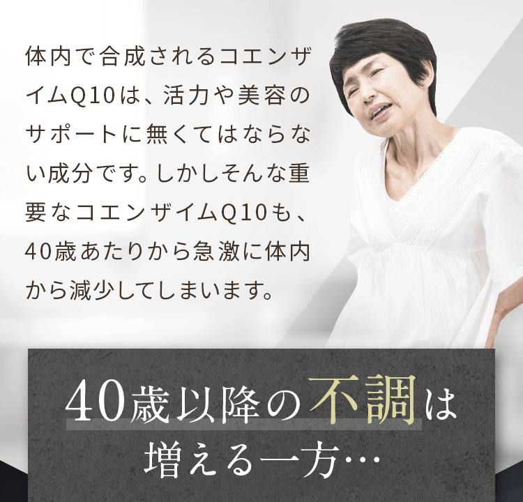 従来の還元型コエンザイムQ10と比べて約3倍の吸収率を誇る「ShiroQ(シロク)」を配合。加齢によって不足する栄養をきちんと摂取することで、毎日をパワフルに過ごすことや年齢を感じさせない美しさをサポートします。