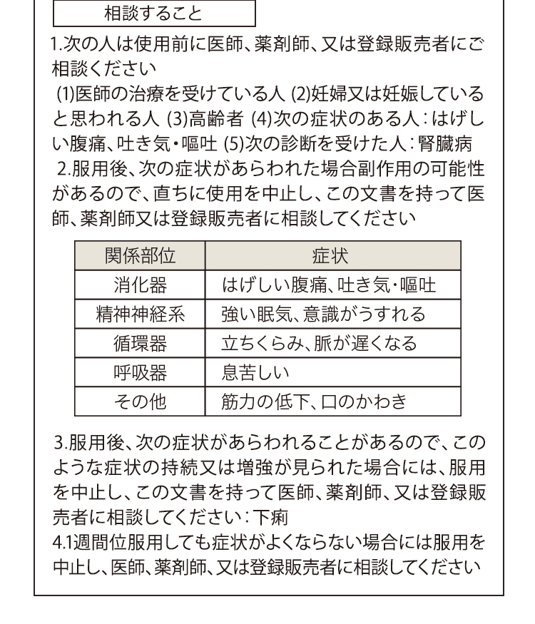 1週間ほど服用しても症状が改善しない場合は、服用を中止し、医師や薬剤師にご相談ください。
